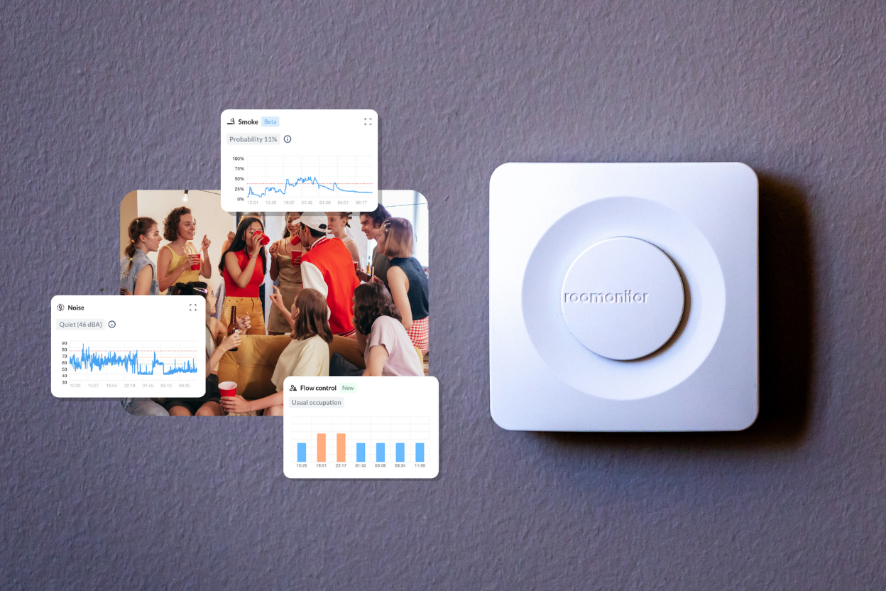 Empêchez de fumer à l’intérieur avant que cela n’endommage votre propriété. Grâce au capteur de fumée de Roomonitor, vous recevez des alertes instantanées dès qu’une présence de fumée est détectée, vous aidant ainsi à protéger votre espace sans effort.